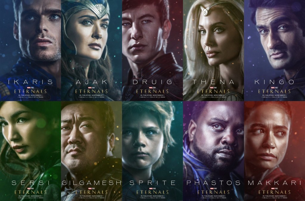 El reparto excepcional incluye a Richard Madden como el todopoderoso Ikaris, Gemma Chan como Sersi, amante de la humanidad, Kumail Nanjiani como Kingo, la potencia cósmica, Lauren Ridloff como el superrápido Makkari, Brian Tyree Henry como el inventor inteligente Phastos, Salma Hayek. como el sabio y espiritual líder Ajak, Lia McHugh como la eternamente joven Sprite de alma vieja, Don Lee como el poderoso Gilgamesh, Barry Keoghan como el distante y solitario Druig y Angelina Jolie como la feroz guerrera Thena. Kit Harington interpreta a Dane Whitman. Dirigida por Chloé Zhao, «Eternals» se estrena en cines desde el 4 de noviembre de 2021.