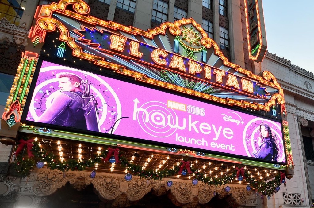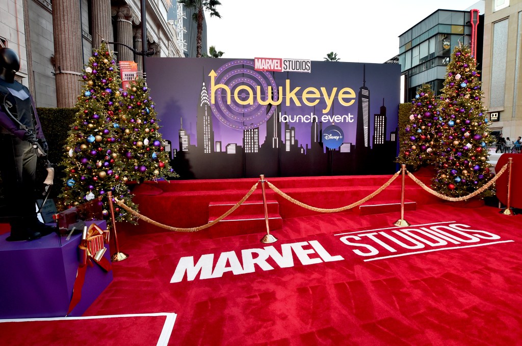 LOS ANGELES, CALIFORNIA – NOVEMBER 17: A view of the red carpet at the Hawkeye Los Angeles Launch Event at El Capitan Theatre in Hollywood, California on November 17, 2021. (Photo by Alberto E. Rodriguez/Getty Images for Disney)
