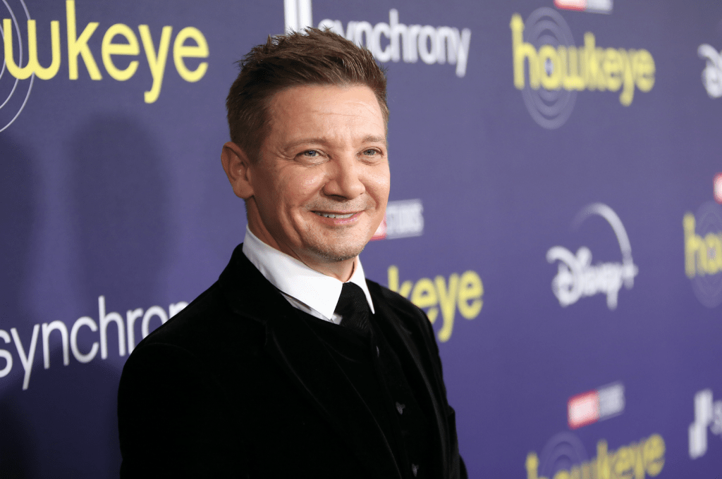 LOS ANGELES, CALIFORNIA – NOVEMBER 17: (L-R) Marvel Studios Co-President Louis D’Esposito, Jeremy Renner, President of Marvel Studios and CCO of Marvel Kevin Feige, and CCO of Disney Studios Content Alan Horn attend the Hawkeye Los Angeles Launch Event at El Capitan Theatre in Hollywood, California on November 17, 2021. (Photo by Alberto E. Rodriguez/Getty Images for Disney)