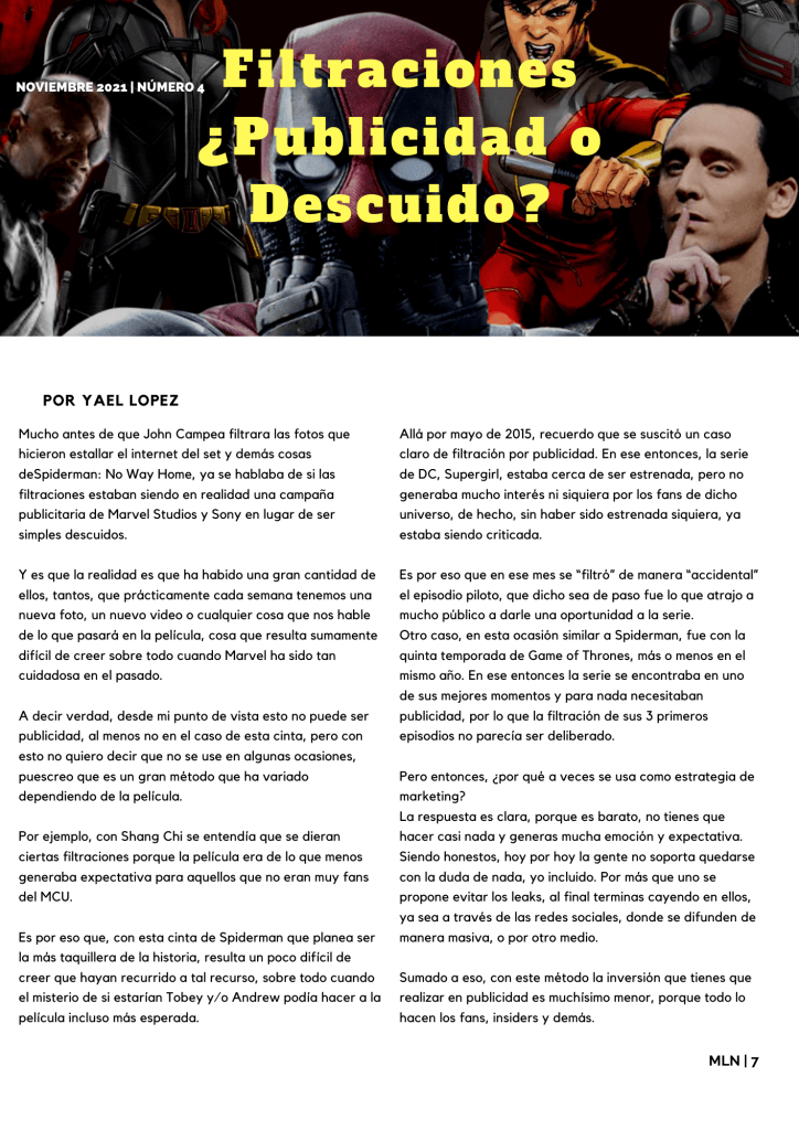 La MLN Magazine es una nueva expansión de Marvel Latin News donde reseñas, noticias más importantes y columnas de opinión son traídas para el disfrute de todos. ¿Deseas colaborar en la revista? Escríbenos a colaboracionmln@gmail.com