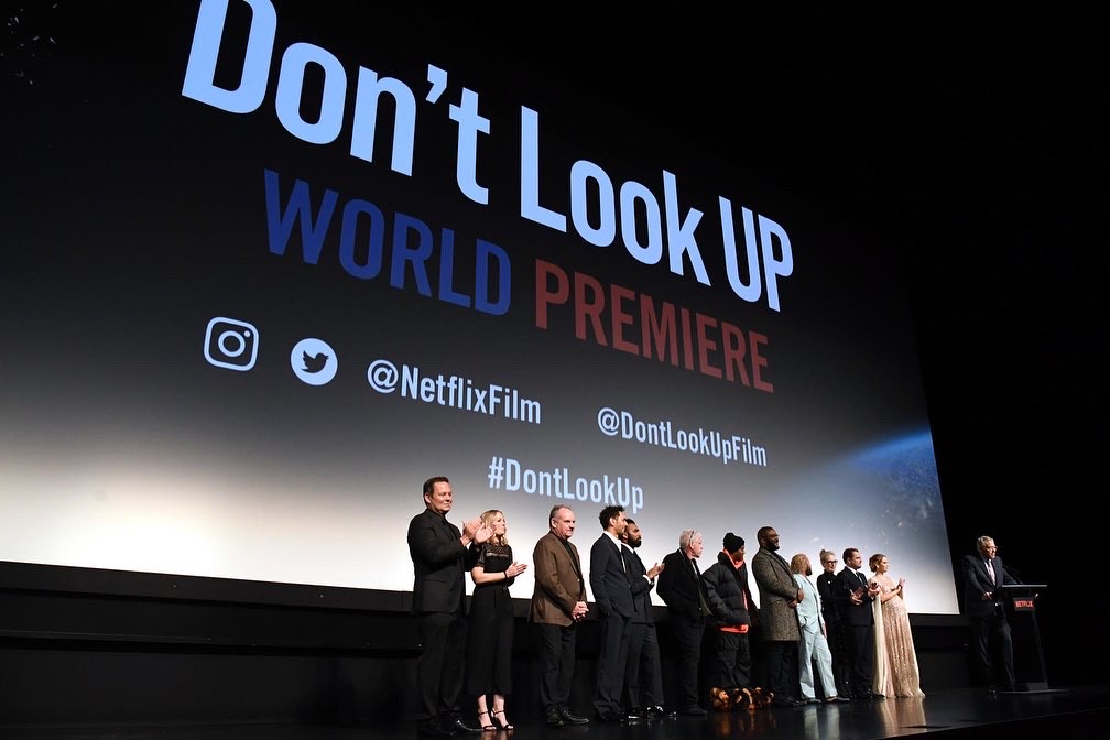El domingo 5 de diciembre de 2021 en el Jazz at Lincoln Center de Nueva York, Netflix organizó el estreno mundial de Don’t Look Up con los miembros del elenco Jennifer Lawrence, Leonardo DiCaprio, Meryl Streep, Jonah Hill, Tyler Perry, Scott Mescudi, Ron. Perlman, Tomer Sisley, Himesh Patel, Paul Guilfoyle y el escritor / director / productor Adam McKay.