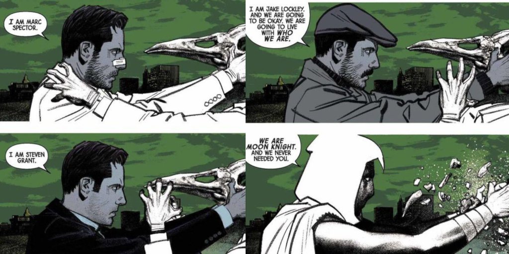 Para ser más claro con este último punto, la realidad es que a través de los comics se confirmó que la locura de Marc es tan fuerte y poderosa que no puede ni ser descrita, de hecho, se determinó que los diferentes personajes que ha desarrollado a lo largo de su vida son consecuencia de haberse convertido en el “representante” de Khonshu.