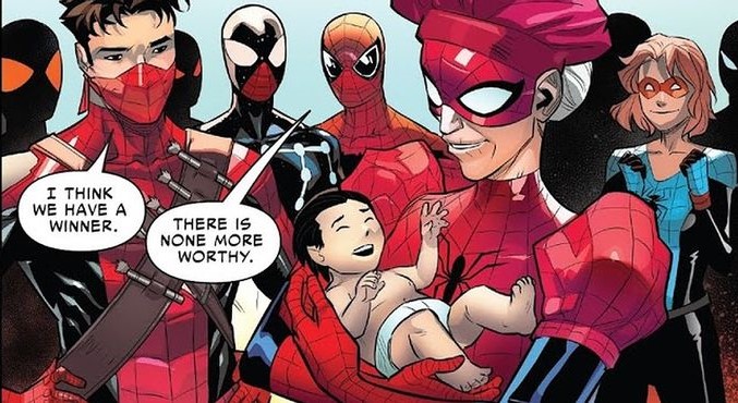 La historia aquí es sumamente extraña, pues pareciera que ocurrió todo lo contario al universo de Spider-Ma’am, ya que, una vez que tanto ella como su marido, su sobrino y el Miles Morales de su realidad descubrieron en Multiverso, decidieron asesinar a todas las versiones suyas que pudieran para ser “los únicos”.