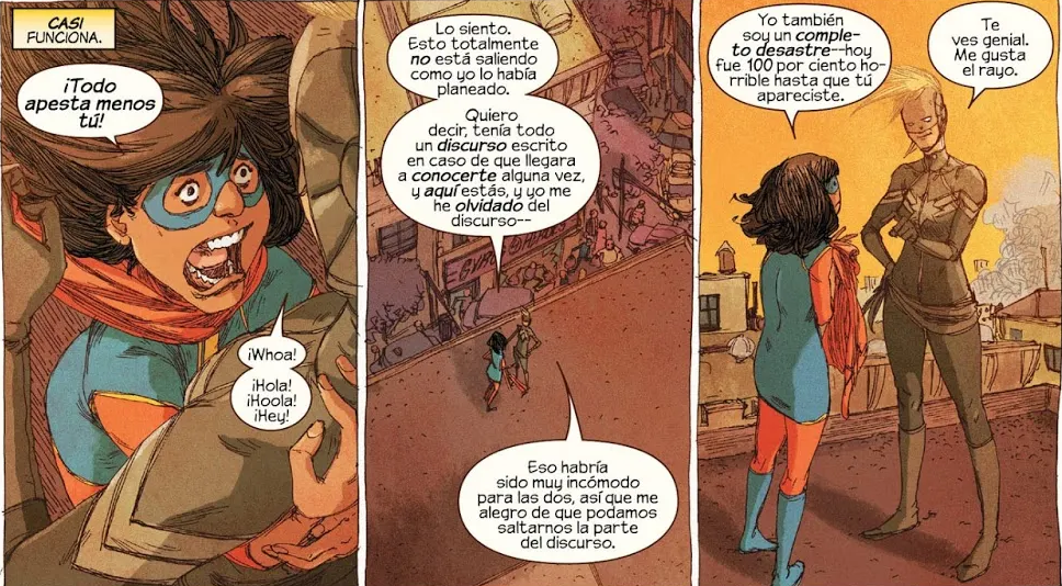 A pesar de estas burlas contantes, la más joven de la familia Khan encontró una vía de escape en su amor por los videojuegos, los superhéroes y sobre todo en Carol Danvers (quien de hecho en sus inicios se llamó Ms Marvel.