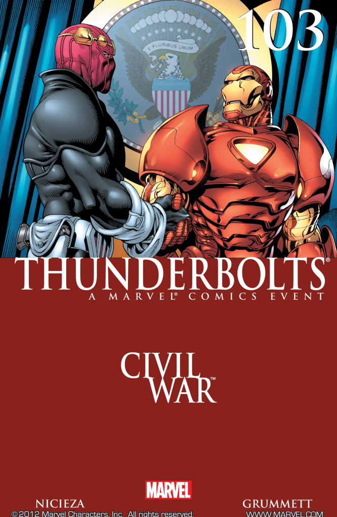 Además, durante Civil War varios grupos de criminales conocidos como “El ejército de los Thunderbolts” fueron ubicados alrededor de los Estados Unidos con la intención de controlar la situación en favor del gobierno.