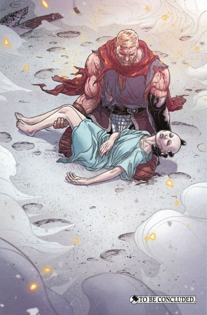 En un acto heróico y con su último aliento, ella se transformó una vez más en la diosa del trueno, y aunque no consiguió salvar la ciudad, si les dio tiempo para escapar de ahí.