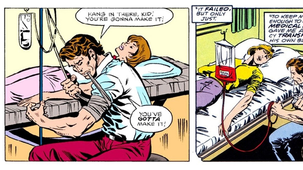 Durante esta charla unos mafiosos intentaron hacerle daño y le dispararon, dejándola gravemente herida, por lo que luego de salvarla, Bruce decidió pasarle un poco de su sangre para así poder salvarle la vida.