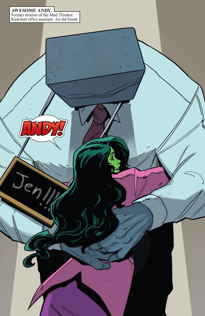 Sobre este último, por ejemplo, la cosa es bastante curiosa, pues durante la etapa de Dan Slott este pasó de ser un esclavo descerebrado a un heroico empleado administrativo en la empresa donde trabaja Jen.