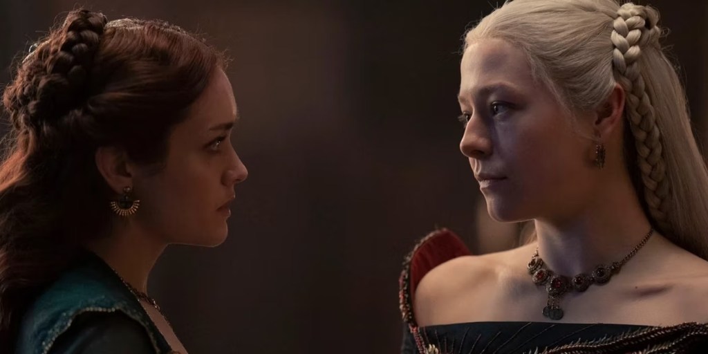 “Es una traición de, espera, te acostaste con él, y yo estoy enamorado de él, y tú lo sabes. Eso no es justo’. Alicent es todo deber, hasta el final. Siempre es el deber contra el corazón con ella… Me alegro de haber podido mostrar cómo se convirtió en esta mujer enfadada»