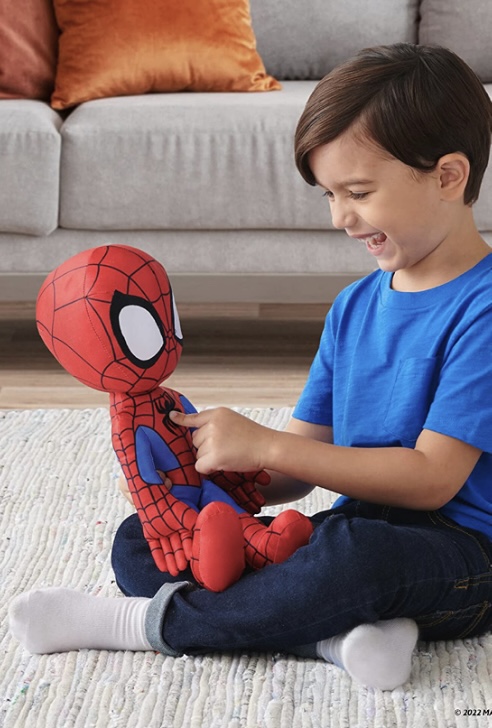 Spidey Feature Plush: El superhéroe favorito del barrio ha hecho acto de presencia para convertirse en tu nuevo, pequeño e increíble amigo. Este peluche de 16″ será el compañero de peluche favorito de tu hijo en sus juegos de aventuras épicas; jAdemás, es un gran compañero de siestas! Spidey incorpora una caja de sonido con 16 icónicas frases del programa, de Marvel’s Spidey and his Amazing Friends. Tu pequeño no dejará de divertirse mientras aprende todas las pegadizas expresiones. ¡Vamos, Spidey, vamos! En Venta Aquí.