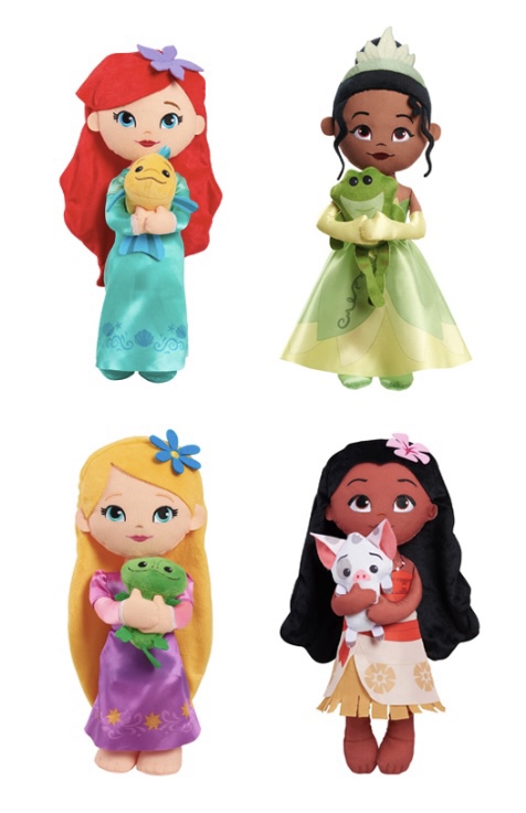Lil’ Friends Princess Plush Assortment: Los fanáticos de las Disney Princess saben que ninguna princesa lo tiene todo sin su apreciado y mejor amigo animal. Estas muñecas de peluche fabricadas con una combinacion de distintos materiales tienen una estatura aproximada de 14″ y sostienen en brazos a sus amigos animales. Colecciona todas las muñecas de peluche Disney Princess Lil’ Friends, incluyendo a Rapunzel & Pascal, Moana & Pua, Ariel & Flounder, y Tiana & Naveen. Se venden por separado. En Venta Aquí.