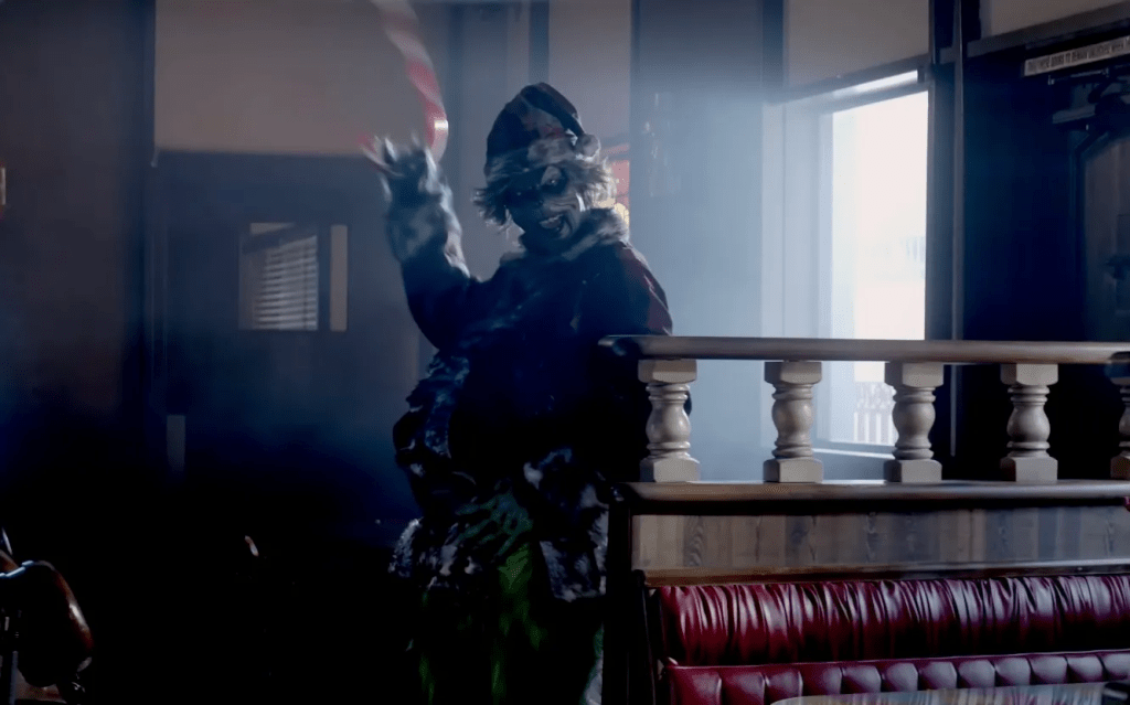 La historia de The Mean One se centra en pequeño pueblo montañoso llamado Newville donde un monstruo de piel verde aterroriza a los habitantes cada temporada navideña mientras viste un traje de Papá Noel rojo sangre.