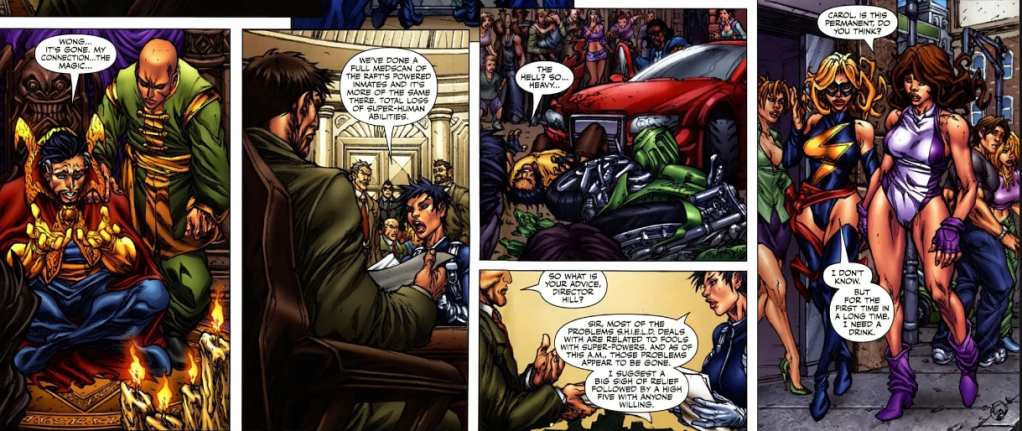 Cosa que evidentemente llevó a que la realidad se modificara una vez más, aunque esta vez de una forma más drástica, pues aquí todo aquél que poseía alguna habilidad, ya fuera héroe o villano, perdió su poder.