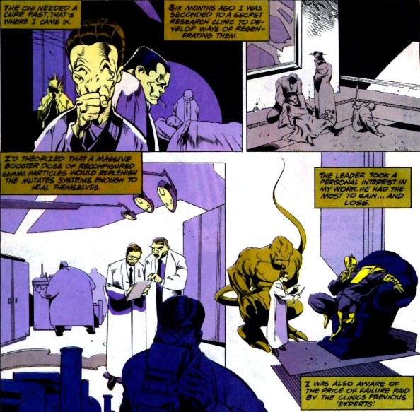 Como es evidente, las intenciones de Bruce no eran salvar a los Oni, pues de hecho en este punto de la historia se revela que anteriormente Charles Xavier había encontrado y preparado a un grupo de mutantes capaces de matar a estos poderosos seres verdes, además de que en su momento Reed Richards experimentó con radiación cósmica y obtuvo superpoderes.