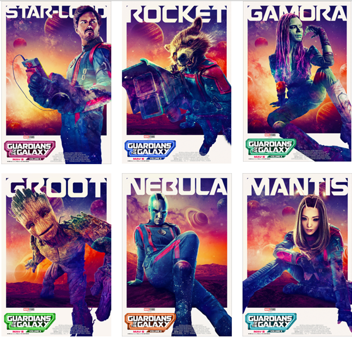 Hoy Marvel Studios debutó los posters de los personajes de GUARDIANS OF THE GALAXY VOL. 3, la última película de la franquicia GUARDIANES DE LA GALAXIA, dirigida por James Gunn. Los nuevos pósters de Star Lord, Gamora, Drax, Nebula, Mantis, Rocket, Groot, Kraglin y Cosmo ya están disponibles para las audiencias.