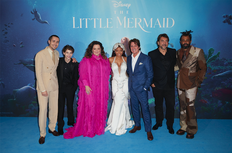 Asistieron los protagonistas de la película Halle Bailey, Jonah Hauer-King, Daveed Diggs, Jacob Tremblay, Javier Bardem, Melissa McCarthy, Noma Dumezweni y Art Malik, así como el director y productor Rob Marshall, los productores Marc Platt y John DeLuca, el compositor Alan Menken, el productor ejecutivo Jeffrey Silver e invitados como James Corden, Stanley Tucci, Guy Ritchie, Sir Tim Rice y Alexander Molony, entre otros.