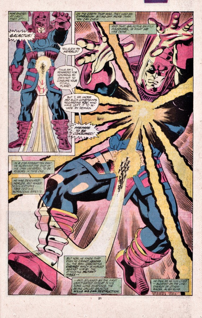 Ahora bien, es importante aclarar en este punto que tal como hemos visto ya en otras historias de What if…?, el poder absoluto atrae siempre al peligro, y esta no fue la excepción, pues debido al nivel de poder que habían ganado los mutantes y que junto a ellos tenían a los inhumanos, razas como los Shi’ar, los Kree y los Skrull crearon una armada para detenerlos, aunque fueron rápidamente destruidos al igual que Galactus.
