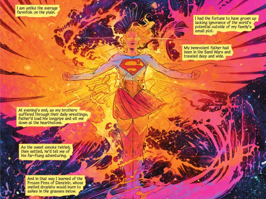 Esta tuvo lugar en The New 52, un reinicio de los comics de DC en donde Zor-El era incluso más poderosa que Superman, pues mientras él había aterrizado en la Tierra, ella pasó años orbitando el Sol en su nave y absorbiendo energía de él.