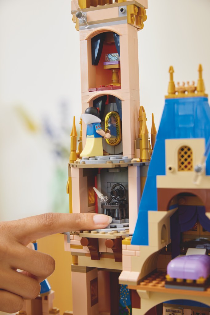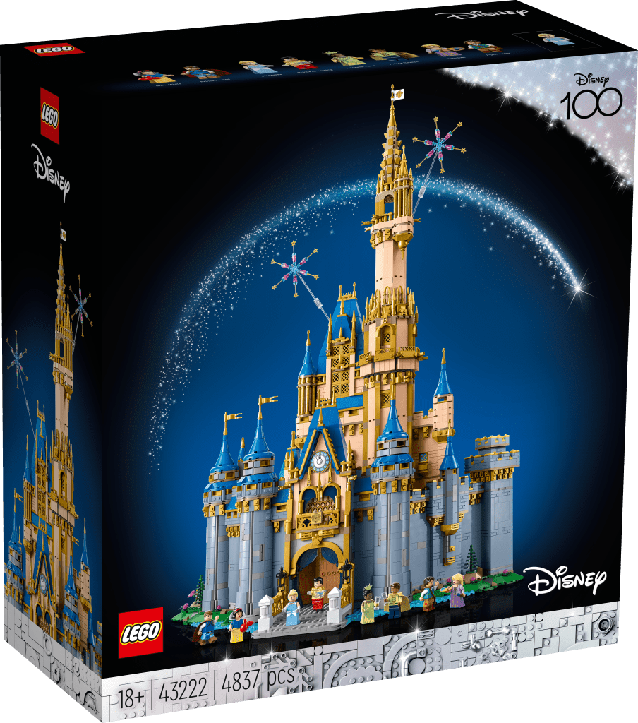 El nuevo set LEGO, Castillo Disney rinde homenaje al icónico castillo al comienzo de todas las películas de Disney. Los 4,837 elementos no solo incluyen la construcción del castillo, sino también referencias a 14 películas clásicas de Disney de los últimos 100 años, como el Barco de Vapor Willie y Blancanieves (la primera princesa de Disney), hasta La Princesa y El Sapo y Moana.