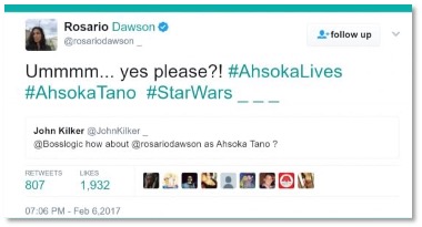 Ante el desafío de encontrar a la actriz ideal para dar vida a Ahsoka, los realizadores escucharon el pedido proveniente del lugar menos pensado: Twitter.