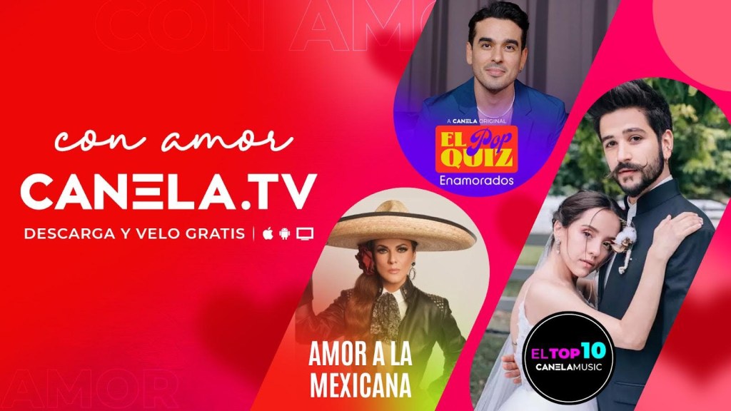En Canela Music puedes disfrutar de ‘El Top 10 – En el Altar’ con videos musicales de historias de amor y desamor, y ‘El Pop Quiz de Enamorados’ donde los enamorados y los no enamorados responden a unas preguntas sorpresas. Además, podrás encontrar la colección Amor a la Antigua, que incluye el mixtape de ‘Amor a la Mexicana‘ con pop y baladas de puras cantantes de México para el mundo.