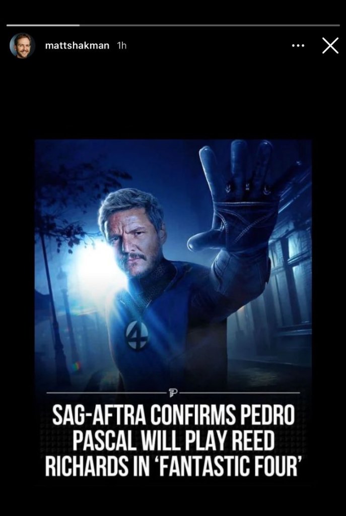 A pesar de que posteriormente el fragmento fue eliminado, la noticia ya se había esparcido por todos lados. Sumado a lo anterior, al poco tiempo el director de la cinta, Matt Shakman, compartió en su Instagram una noticia donde se daba por hecho que Pascal sería Reed Richards, cosa que claramente no gustó a Marvel, pues su cuenta fue eliminada solo unas horas después.