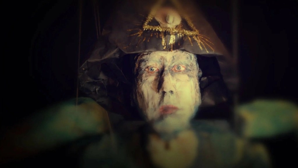 ANIMALIA PARADOXA trata de la búsqueda de agua de un humanoide anfibio en un laberíntico paisaje postapocalíptico. En el primer plano, una cortina de plástico es descorrida por la mano de un maniquí decrépito.