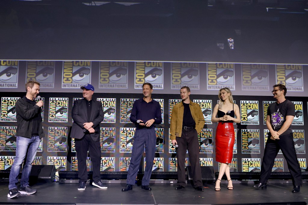 Acompañando a Feige estaba el director Matt Shakman y la primera familia de Marvel junta en el escenario por primera vez, Pedro Pascal (Reed Richards/Sr. Fantástico), Vanessa Kirby (Sue Storm/Mujer Invisible), Joseph Quinn (Johnny Storm/Antorcha Humana) y Ebon Moss-Bachrach (Ben Grimm/la Mole).
