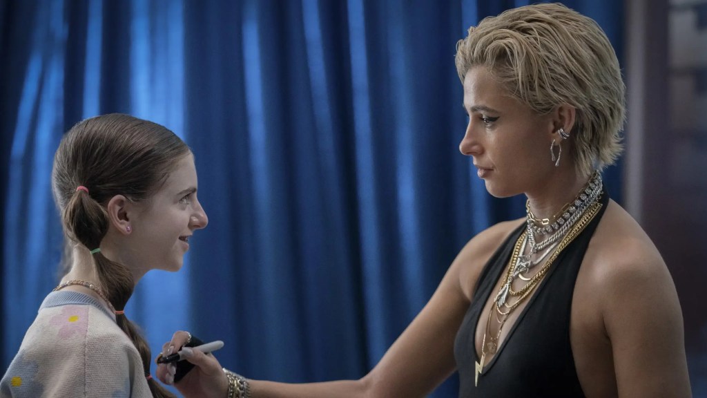 La estrella principal del reparto de Smile 2, tal como se ha podido ver en todos los avances, será ni más ni menos que Naomi Scott, quien en esta ocasión interpretará a la estrella mundial conocida como Skye Riley.