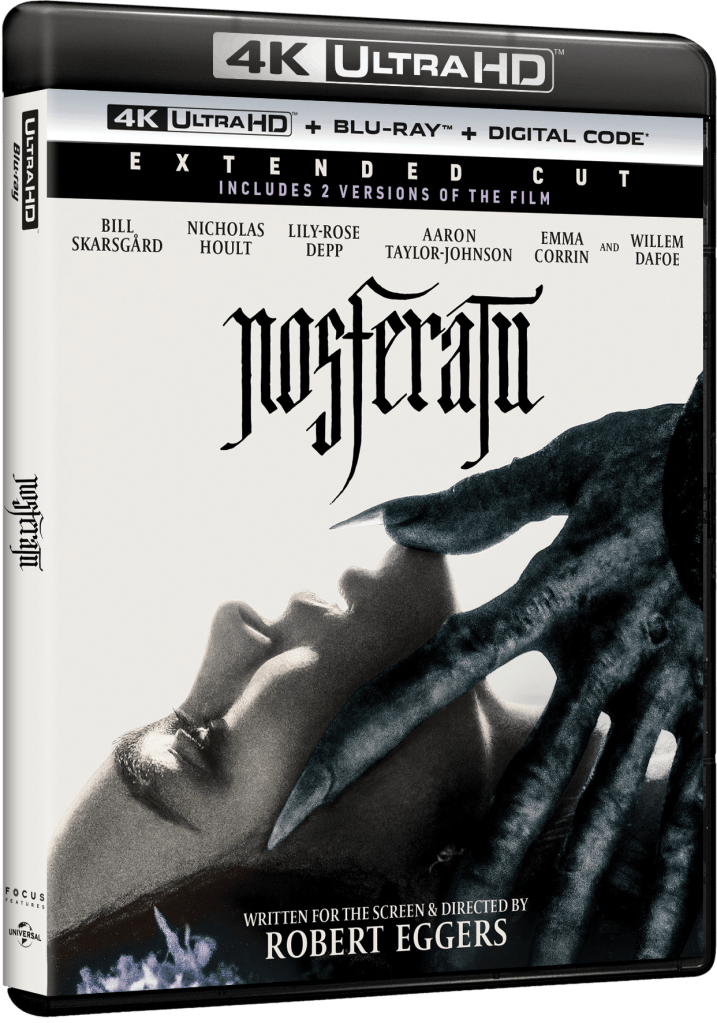 Universal City, California, 21 de enero de 2025 – Mientras el público sigue sucumbiendo a la oscuridad en los cines de todo el país, NOSFERATU de Focus Features debuta exclusivamente en plataformas digitales para comprarla o alquilarla hoy mismo, gracias a Universal Pictures Home Entertainment. Con una certificación de novedosa en Rotten Tomatoes y aclamada por los críticos como «un festín de esplendor de terror cinematográfico» (USA Today) y «un logro de dirección impactante» (Screenrant), la inquietante película de terror repleta de suspenso estará disponible en 4K UHD, Blu-ray™ y DVD el 18 de febrero de 2025. Compra tu copia de NOSFERATU con una versión extendida nunca antes vista en los cines, contenido adicional que incluye escenas eliminadas y material del detrás de escena, así como el comentario exclusivo del director Robert Eggers, que solo se consigue en las tiendas minoristas participantes de todo el país, incluidas Apple TV, Fandango at Home (anteriormente Vudu), Comcast Xfinity, Cox, Google/YouTube, Microsoft Movies & TV y Movies Anywhere.