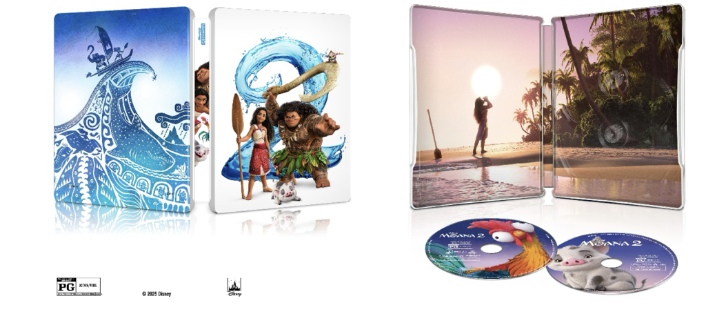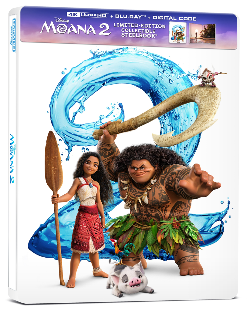 Tanto los críticos como los fans han aclamado a Moana 2 como «un viaje fantástico» (Brian Truitt, USA Today) y “una alegre aventura que encantará a toda la familia” (BJ Colangelo, Slash Film). El lanzamiento digital y en Blu-ray va mucho más allá con horas de contenido adicional exclusivo para toda la familia que incluye una versión completa de la película para acompañar cantando, escenas eliminadas, mini videos y mucho más. La película en 4K UHD estará disponible en una edición limitada coleccionable de SteelBook® con ilustraciones y empaque personalizados.
