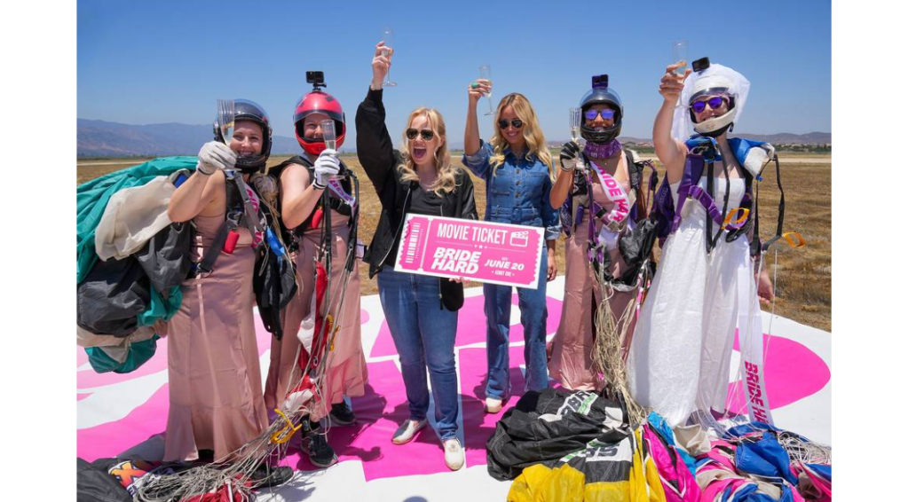 Rebel Wilson y Anna Camp fueron el centro de control de misión mientras un grupo de damas de honor daba el salto de fe definitivo: lanzarse en paracaídas para dar inicio a la venta de boletos de su nueva y salvaje comedia de acción, BRIDE HARD, que llega a los cines el 20 de junio.
